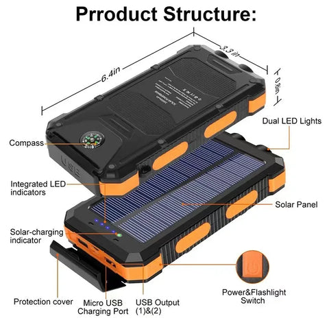 Portable,Waterproof,Solar,Power,Bank,10000mAh,Camping,LED,Light,Outdoor,Travel,USB,Power,Bank,For IPhone,For Xiaomi,For Samsung,