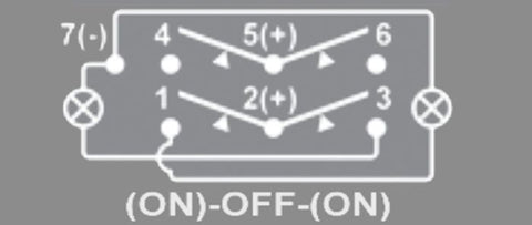 12/24V ROCKER SWITCH MOM ON/ OFF/MOM ON WITH WINCH SYMBOL 2 LED & 7 PUSH ON TERMINALS